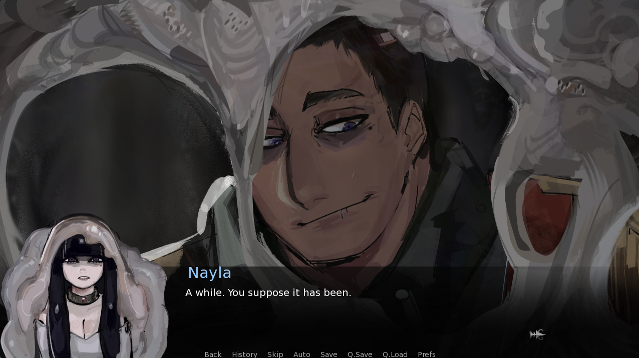 Haven't finished yet, but I am loving this so far! It's very interesting plot wise, and while there are some minor mistakes/rough spots, it's so amazing how you managed to make this within a month! I think the quality is great, and I lowkey vibe with the sketchy and painterly style. I love Nayla and her expressions, and you also did a great job with choosing the soundtrack! Can't wait for the update.